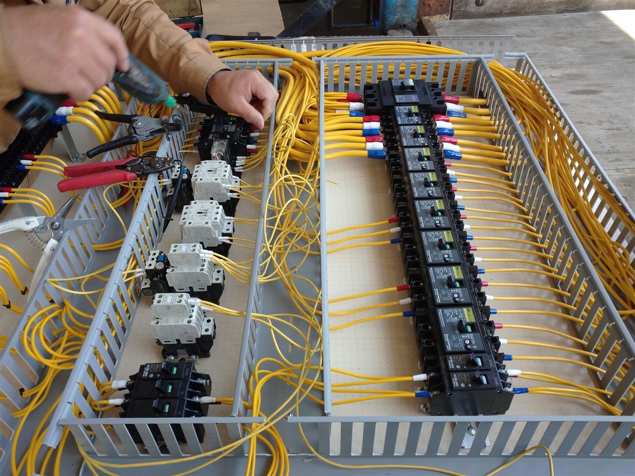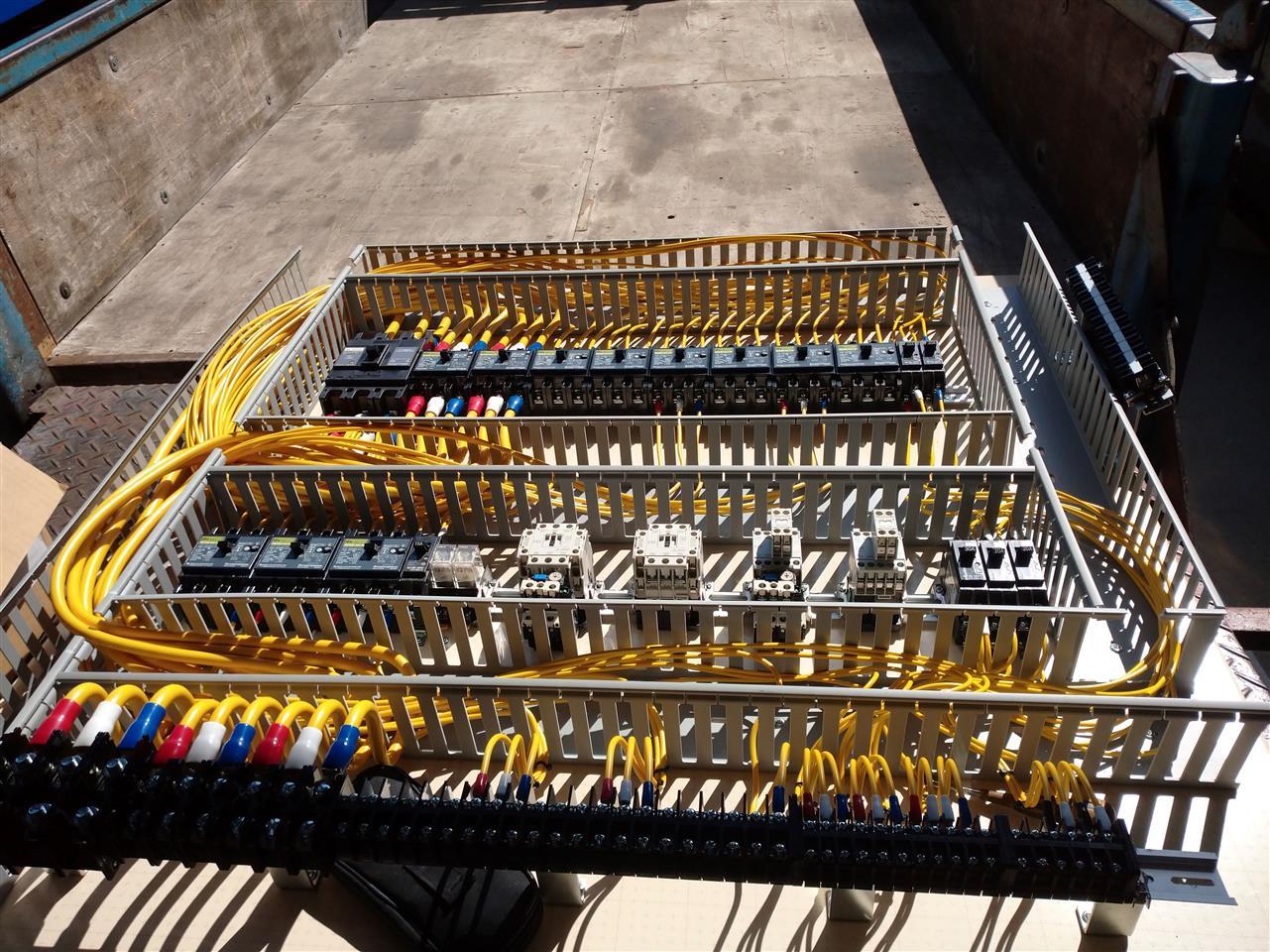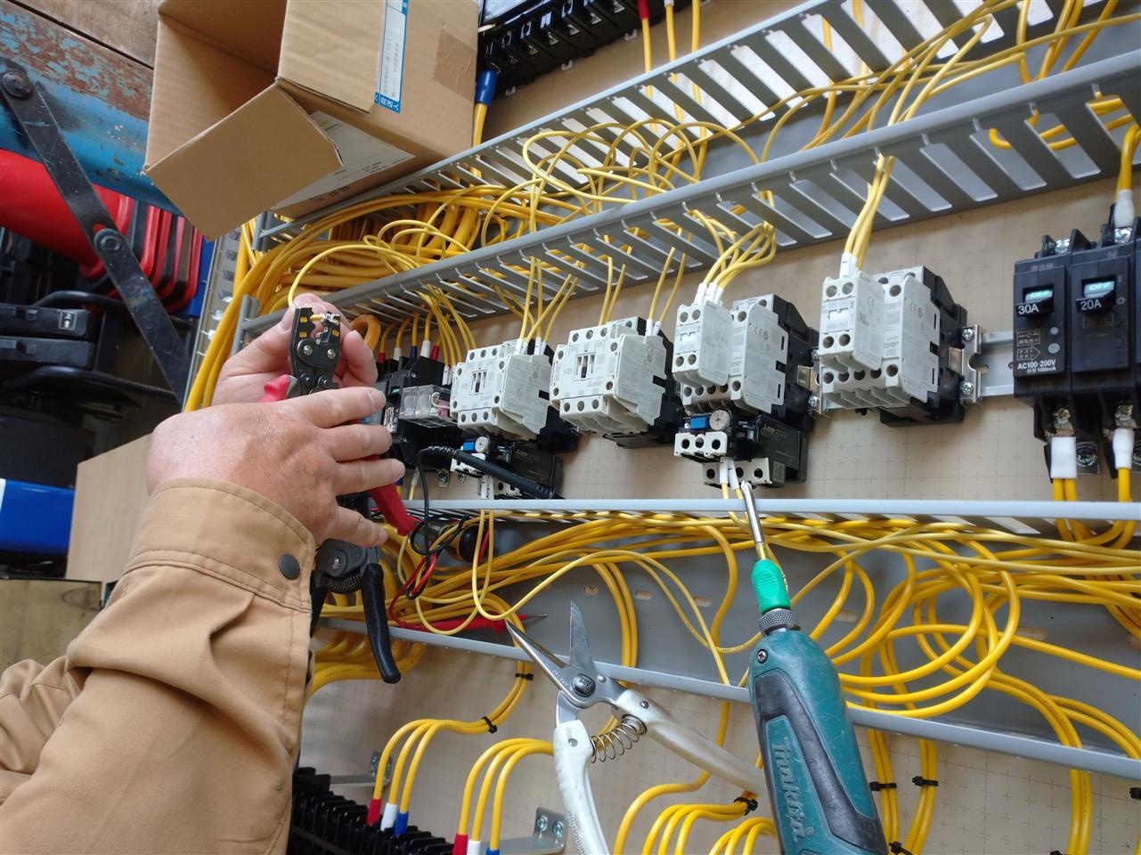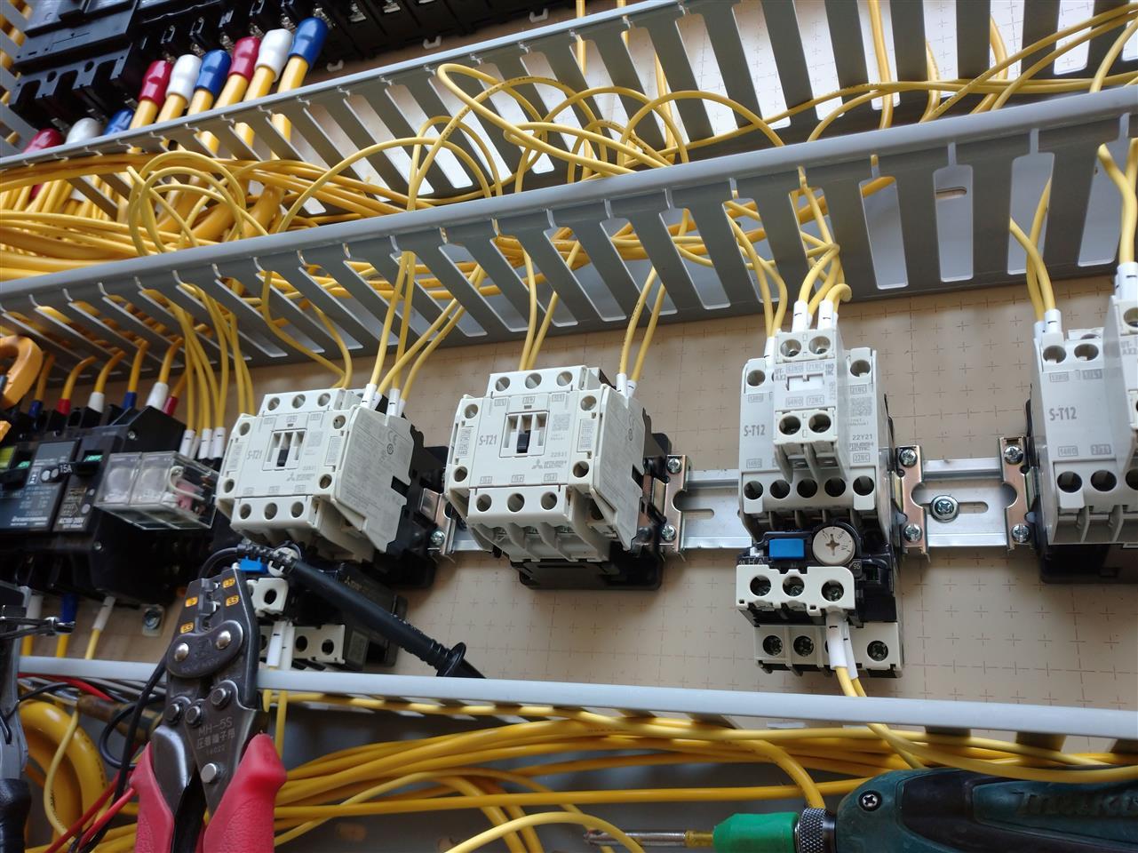 当社は、「制御盤」も作成します。制御盤とは、文字通り機械やモーターを制御する分電盤です、今回の制御盤は、ポンプ数台を条件により制御して動かすための物です。電気工事店と言っても、この制御設備が出来る会社は少ないと思います。専門にしている業者さんにお願いする事が多いと思います。
